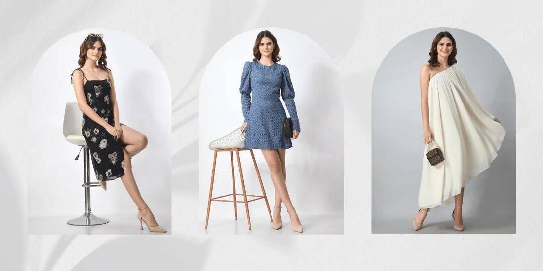 Handbags are an essential styling element that can define your overall look. For a casual day look, a crossbody bag or a tote bag works well with a simple one-piece dress. A structured handbag or a clutch is ideal for formal occasions, while a sparkling evening bag adds glamour to party wear dresses for women.